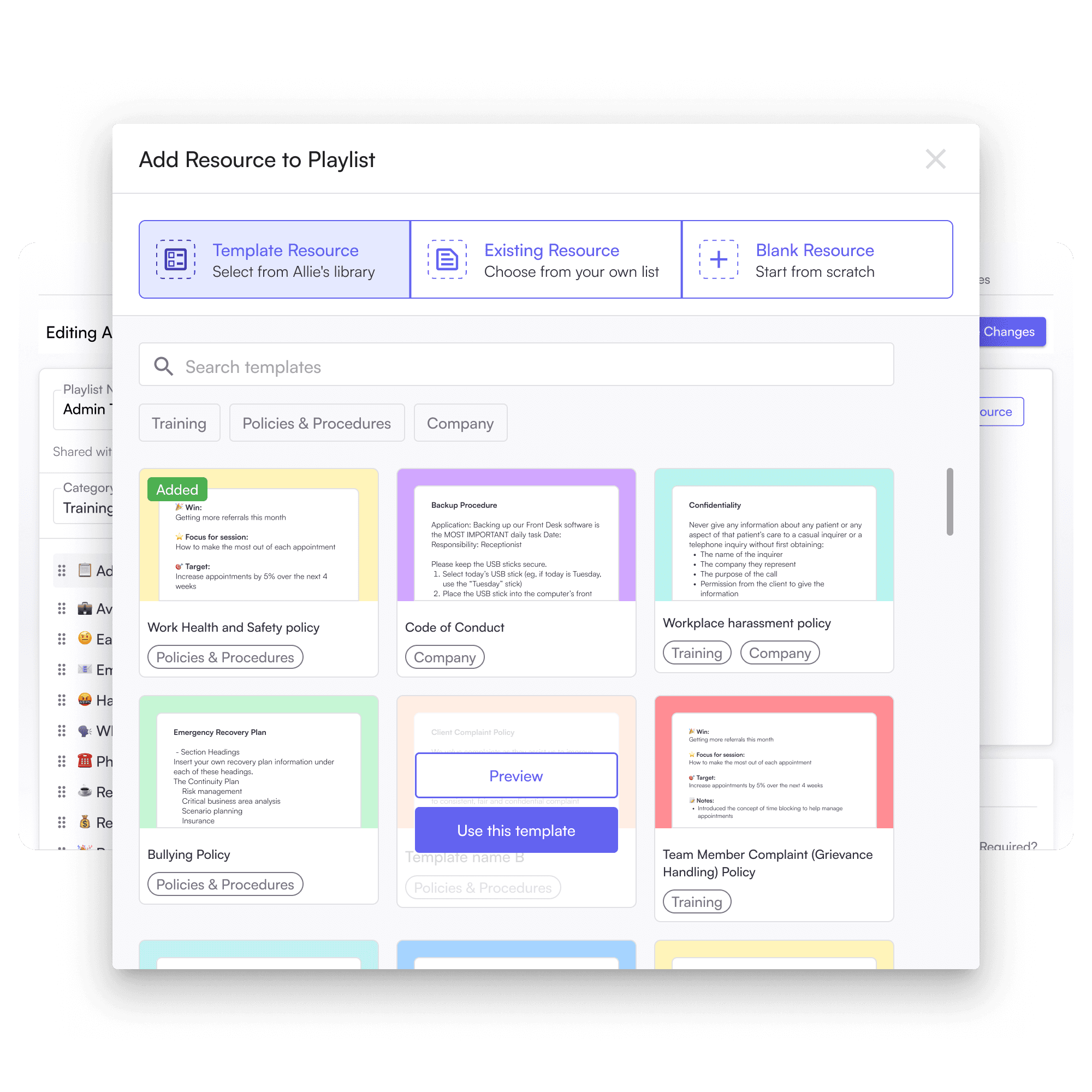 Allie brings all your systems and templates into one easy-to-navigate platform, eliminating the hassle of searching through multiple files and folders, so you can spend more time caring for your clients.