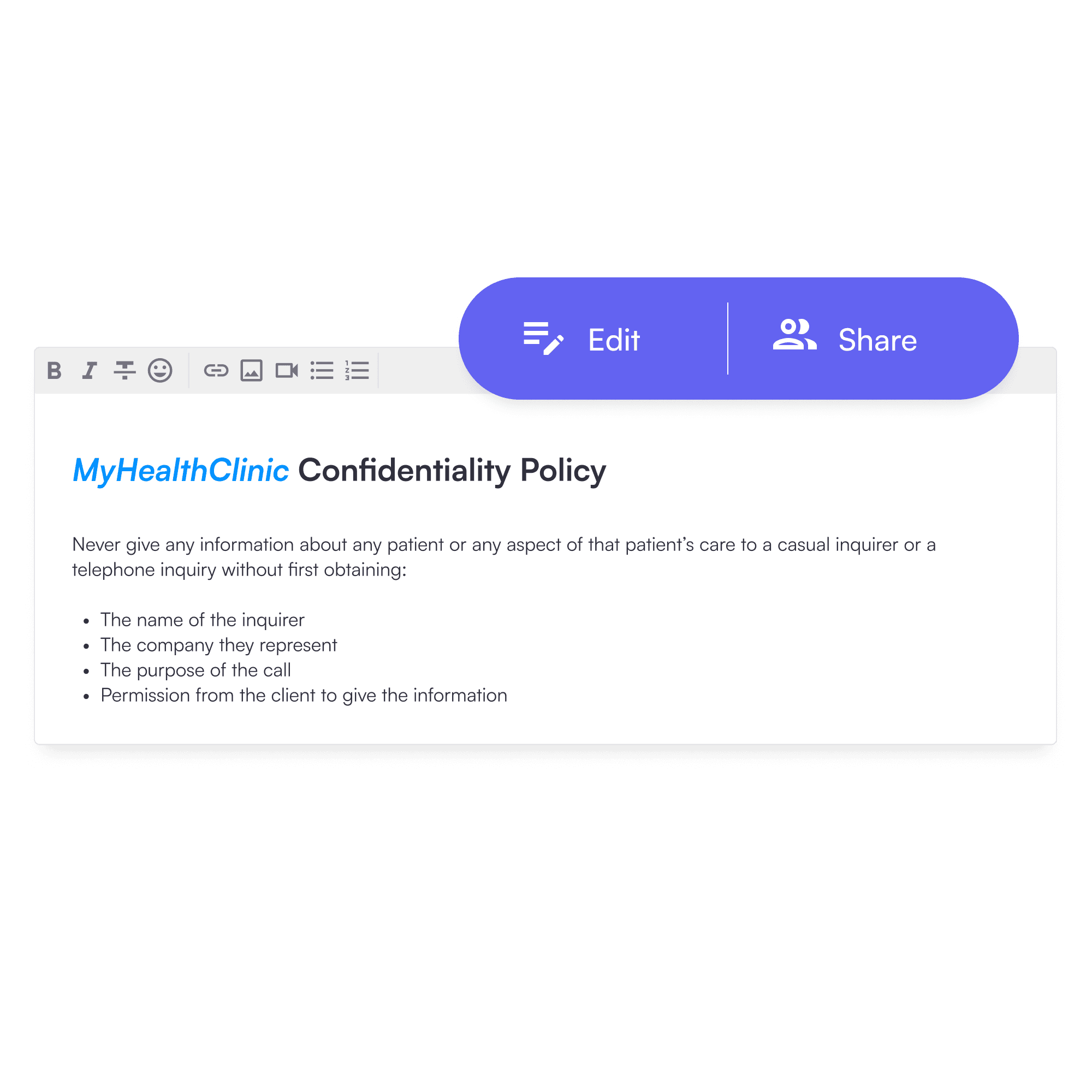 Store online, share, and track if your team have read and acknowledged the process